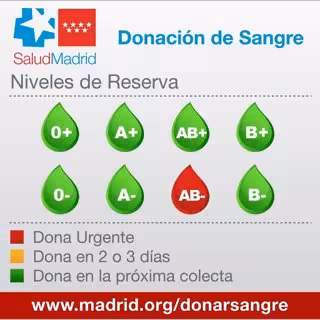 Los hospitales madrileños necesitan donaciones de sangre del tipo 'AB-' de manera urgente, según ha informado el Centro de Transfusión de la Comunidad a través de su cuenta de Twitter.