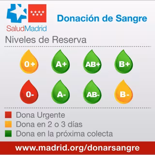 Los hospitales de la Comunidad de Madrid necesitan de forma urgente sangre del grupo 0- y de los grupos 0+ y B- en dos o tres días, según ha informado el Centro de Transfusión en un comunicado.