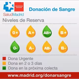 El resto de grupos (0- y AB+) se encuentran en alerta verde, por lo que no se necesitan donaciones hasta la próxima colecta.