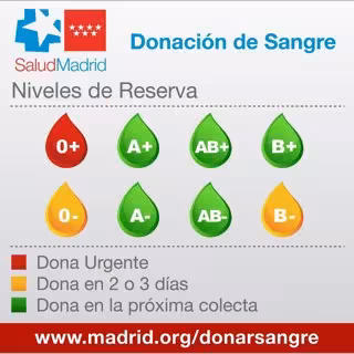 El Centro de Transfusión de la Comunidad de Madrid ha vuelto a advertir este viernes que necesitan donaciones urgentes de sangre del grupo 0+, que se encuentra en nivel rojo, y en los próximos dos o tres días de los grupos 0- y B-, que están ahora en nivel amarillo.