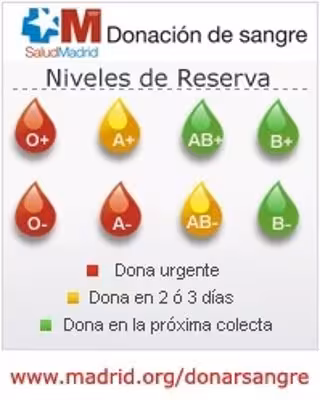 El Centro de Transfusión de Sangre de la Comunidad de Madrid ha solicitado este lunes a los ciudadanos la donación urgente de sangre de los grupos 0+, 0- y A- debido a las escasas reservas, ha informado la Comunidad en un comunicado.