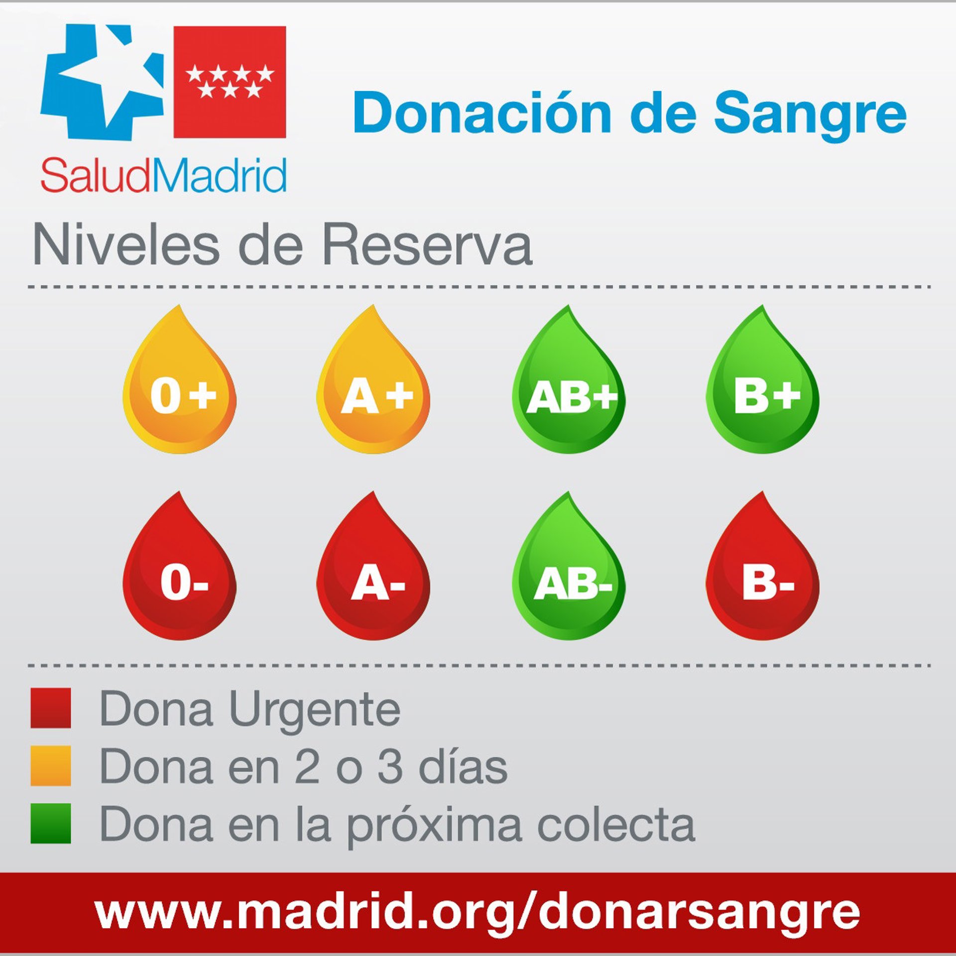 También está en alerta amarilla los grupos 0+ y A+, por lo que son necesarias las donaciones para los dos o tres próximos días. El resto (AB+, B+ y AB-), están verde, por lo que se requieren ya para la próxima colecta.