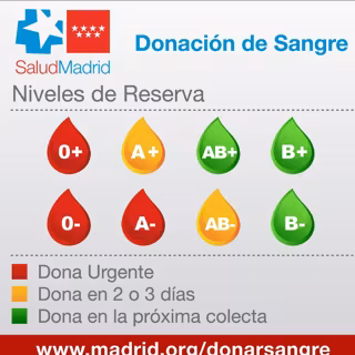Los hospitales de la Comunidad de Madrid necesitan con urgencia sangre de los grupos 0-, 0+ y A-, al encontrarse en alerta roja, y también de A+ y AB-, que están en alerta amarilla.