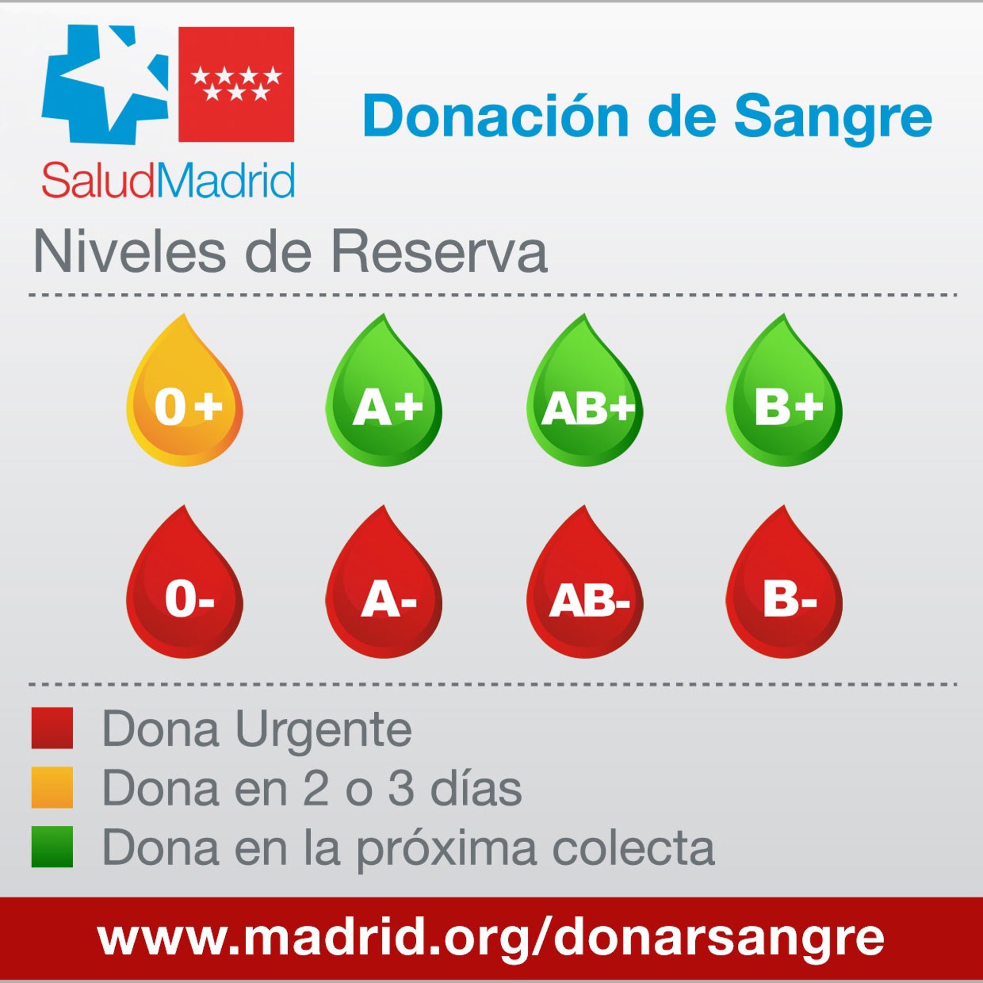 El organismo detalla que las entradas de donaciones de sangre están siendo bajas estos días y que el resto de grupos también descienden, como el caso del grupo 0+ que está en alerta amarilla y requiere donaciones en dos o tres días.