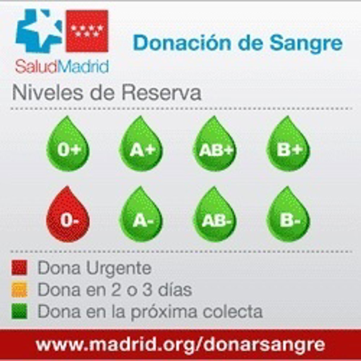 Los hospitales de la Comunidad de Madrid necesitan de forma urgente donaciones de sangre del tipo '0-', según ha informado el Centro de Transfusión de Sangre de la región este lunes.