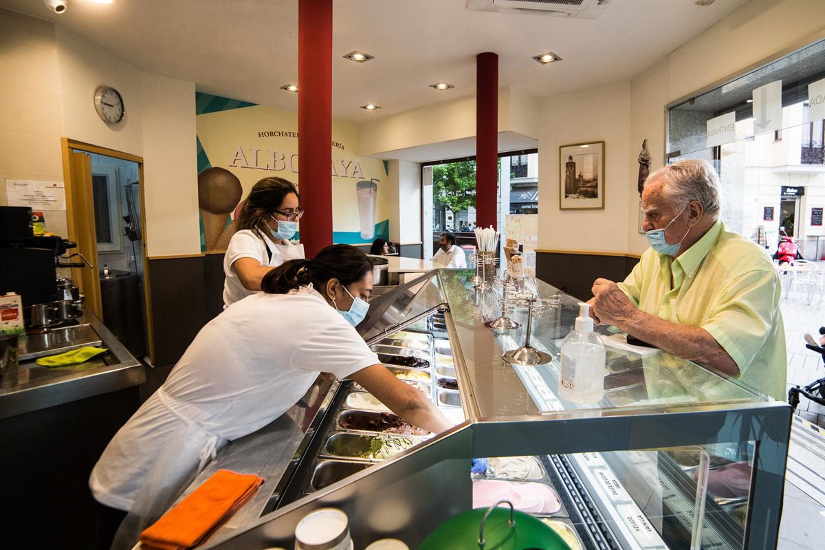 Clientes en la heladería Alboraya el día en el que se reabren al público los establecimientos de hostelería y restauración - Joaquin Corchero / Europa Press