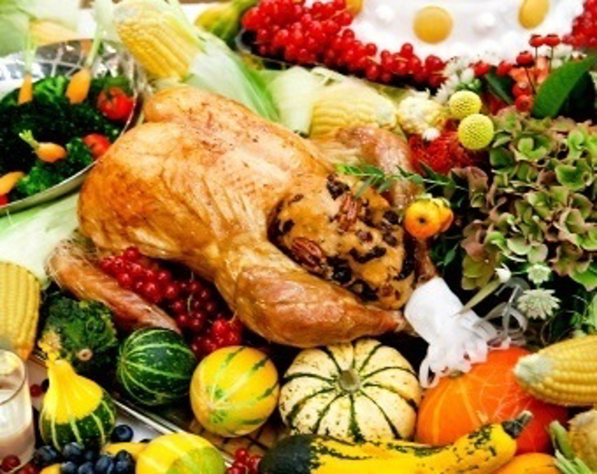 No faltarán las cremas calientes la de maíz y calabaza, como plato principal se podrá probar el tradicional pavo asado con o sin relleno y como acompañamiento los purés de patata y/o batata, maíz dulce, panaché de zanahoria, brócoli y nabo con salsa 'gravy' o mantequilla con caldo de pollo.