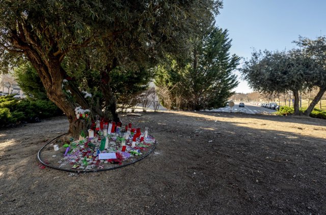 Velas situadas en el Bulevar de la Naturleza en Vallecas, en recuerdo a Jaime Guerrero, de 15 años de edad, al que asesinaron este fin de semana en la calle Atocha de Madrid, a 9 de febrero de 2022, en Vallecas, Madrid (España). - Alberto Ortega - Europa Press