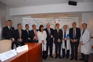 Al acto de presentación de este complemento alimenticio han acudido el consejero de Sanidad de la Comunidad de Madrid, Javier Rodríguez, el director general de los laboratorios Ynsadiet, Juan Carlos Ynclán, la investigadora del grupo de Cirugía Experimental de La Paz, Carlota Lago, y el catedrático de Tecnología de Alimentos de la UAM, Guillermo Reglero.