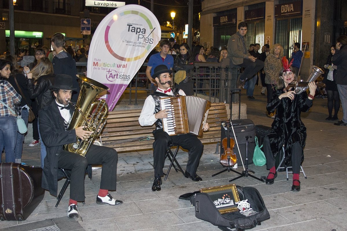 Turistas de los cinco continentes y madrileños de todas las edades han visitado Lavapiés para degustar 75 tapas internacionales, con actuaciones gratuitas de 14 grupos musicales y compañías teatrales: el pasacalles de danza y percusión africana de Docakene, las melodías balcánicas de Million Dollar Mercede$ Band, el teatro circense de Naranjarte y Pipo Metal, o las canciones del trío rockabilly Lucky Dados.