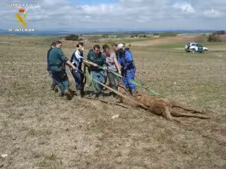 Así, una patrulla del SEPRONA se presentó en el lugar, y comprobó que había ocho caballos aún vivos, pero con claros síntomas de caquexia y abandono, y que carecían de comida y agua. Además, vieron que otro caballo había muerto, y su cadáver había sido parcialmente devorado por dos perros que también se encontraban abandonados en la parcela.