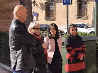 La concejala de la Junta Municipal de Barajas, Marta Gómez Lahoz, acompañada por los familiares de Manuel Jiménez, el presidente de la asociación Barajas BIC David Carrascosa, la concejala del PSOE, Mercedes González, y representantes de todos los grupos políticos han acudido al acto de inauguración.