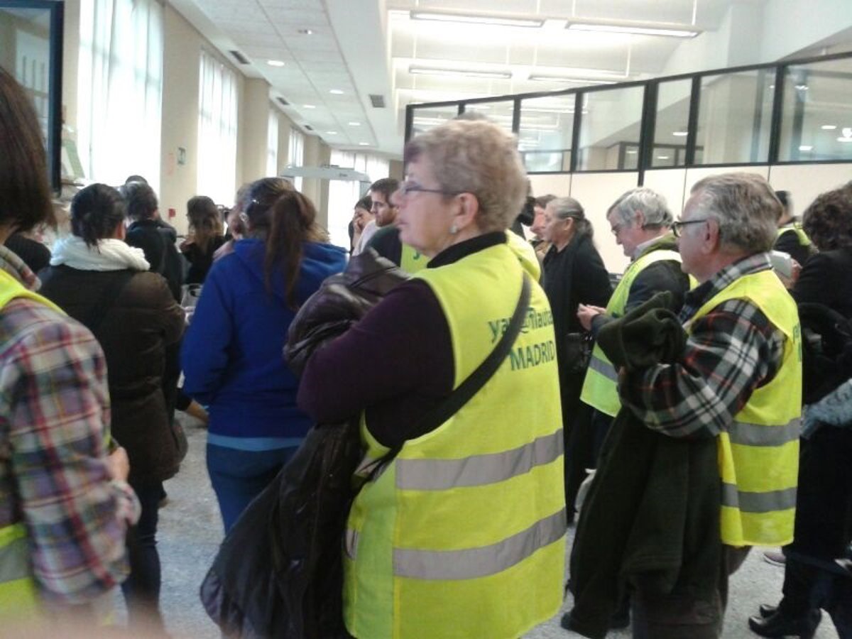 Integrantes de la Plataforma de Afectados por la Hipoteca (PAH) y veteranos del movimiento 15M, conocidos como 'yayoflautas', se han encerrado este martes, en torno a las 10 horas, en la sede de la Empresa Municipal de la Vivienda de Madrid (EMVS), en Santa María de la Cabeza, en protesta por los desahucios que se van a producir en este mes de enero.