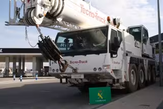 Se trata de un camión grúa autopropulsado marca Liebherr, de 60 toneladas y 50 metros de brazo telescópico, que había sido robado en Madrid fechas atrás. Inmediatamente le realizaron un cambio de matrícula por la de otro vehículo de similares características y en servicio en otra provincia.