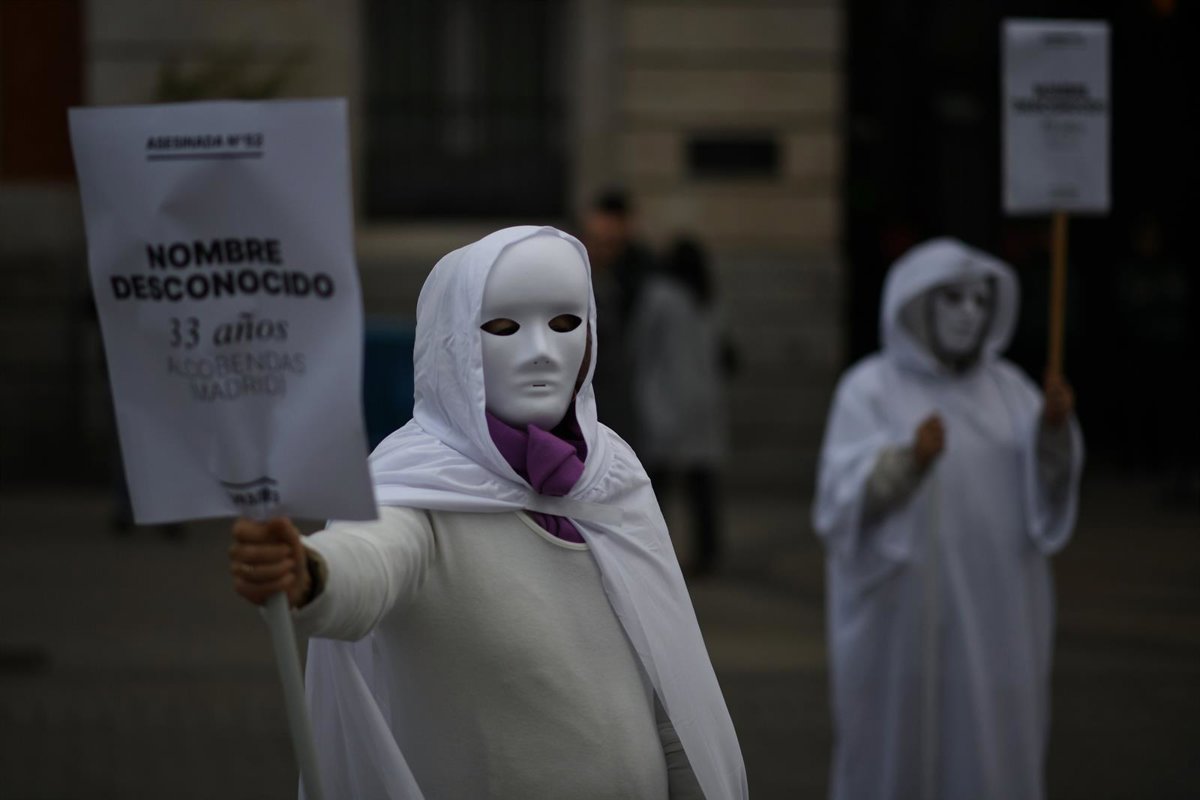 Grupos feministas se concentran por los últimos asesinatos machistas en la Puerta del Sol. - Fernando Sánchez - Europa Press