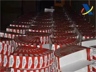 La maquinaria intervenida constituye una cadena de fabricación formada por cuatro máquinas industriales que aúnan todo el proceso secundario, desde la introducción en una tolva de la picadura del tabaco procedente del proceso primario, hasta su envasado en cajas de 50 cartones cada una (500 cajetillas), todas ellas de la marca 'Marlboro', por lo que al inicial presunto delito de contrabando imputado a la organización, se añade ahora un presunto delito contra la propiedad industrial.