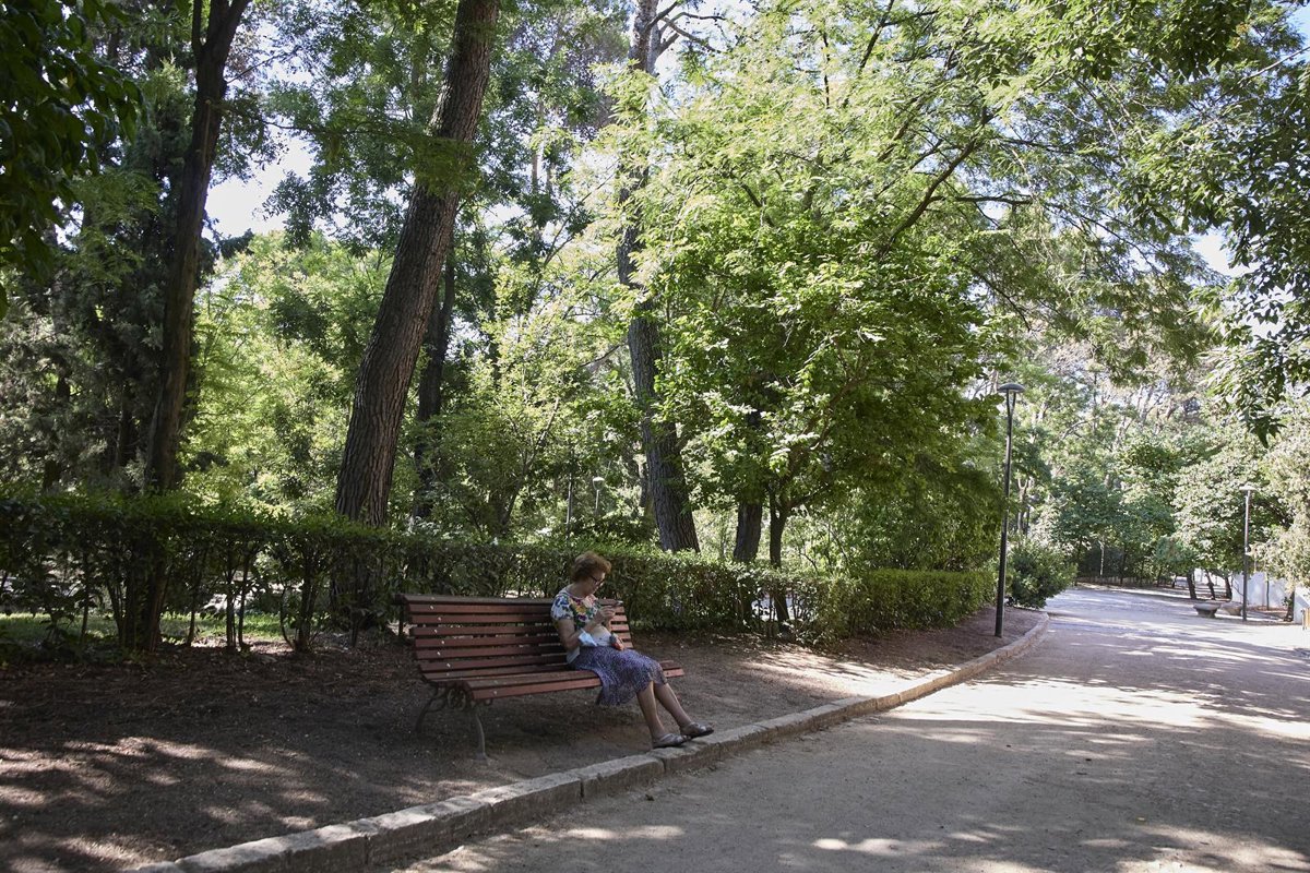Archivo - Una señora sentada en un baco del parque Quinta de los Molinos, en el distrito de San Blas-Canillejas, Madrid (España). - Jesús Hellín - Europa Press - Archivo