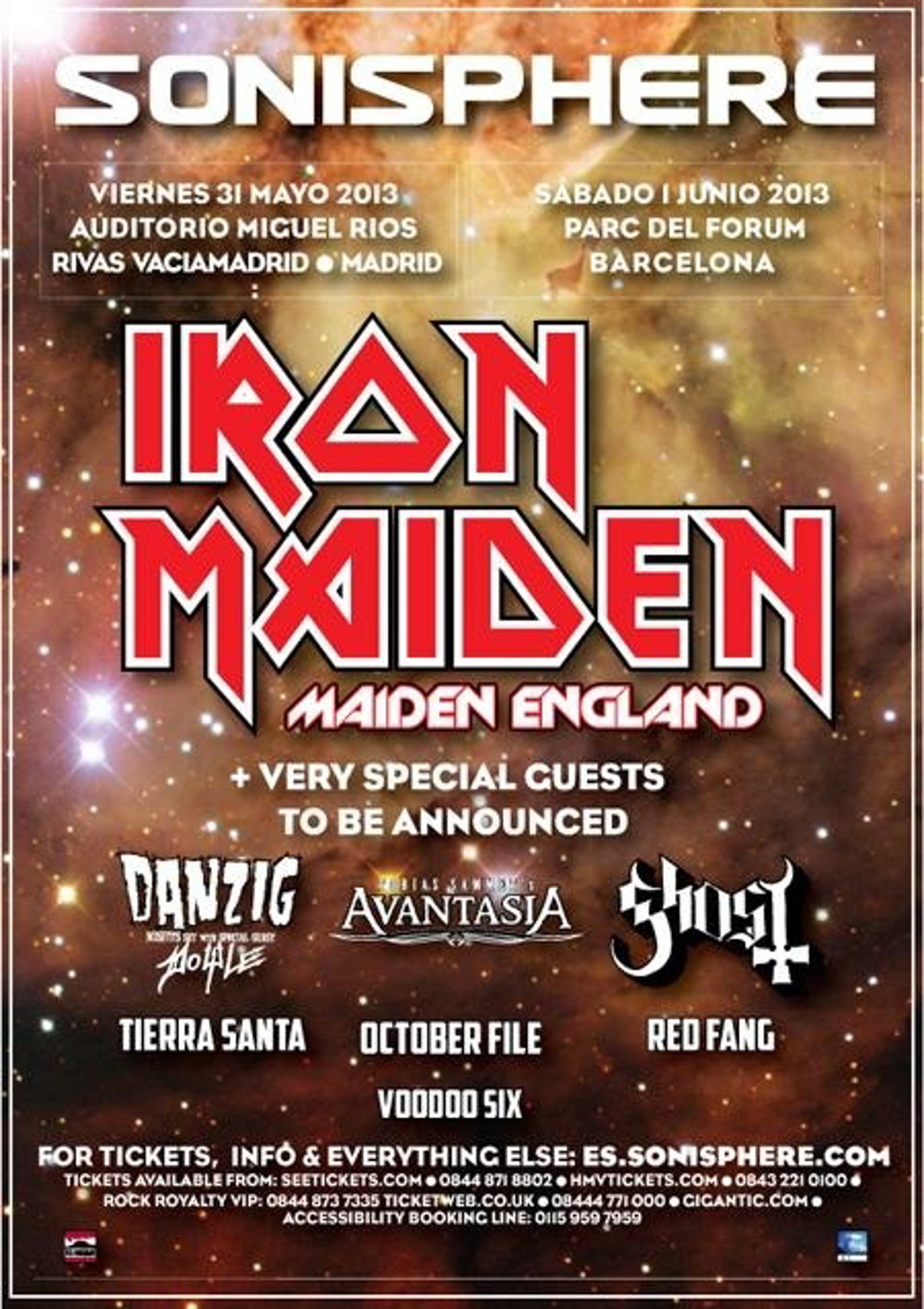 Las actuaciones de Iron Maiden en Sonisphere España serán las únicas que ofrezcan en el país en 2013. Su último disco de estudio, 'The Final Frontier' (2010), llegó a ser número de ventas en España, demostrando que la fiebre por Iron Maiden en nuestro país sigue intacta.