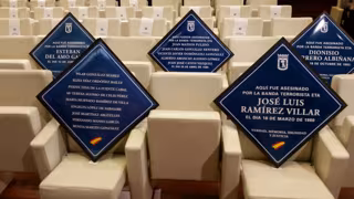 La presentación ha tenido lugar en el Palacio de Cibeles, donde la quincena de placas han sido colocadas en los asientos de las dos primeras filas del salón de actos del Palacio de Cibeles en un gesto para demostrar que las víctimas del terrorismo siguen presentes en la ciudad.
