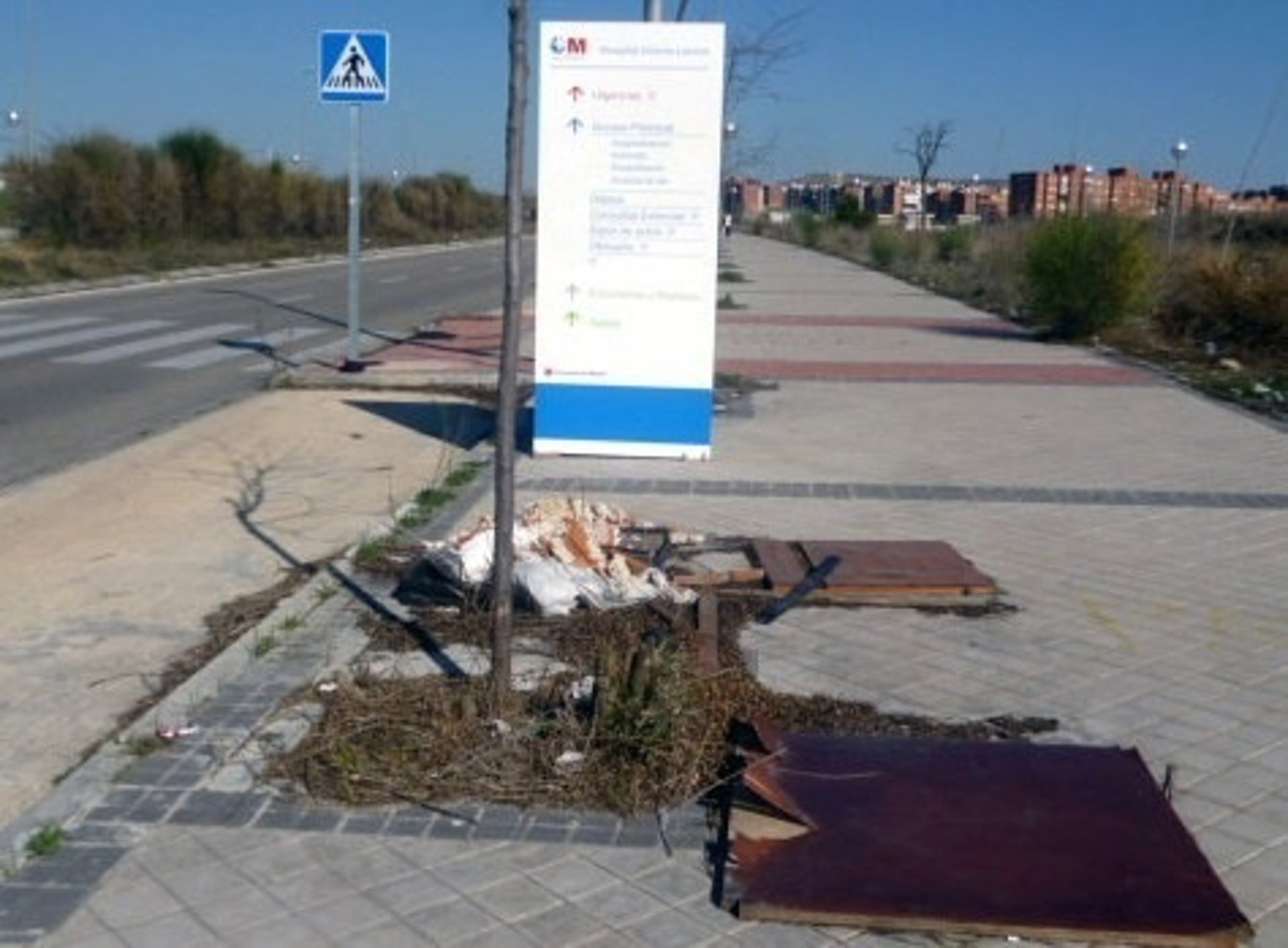 El Grupo Municipal Izquierda Unida critica "la pasividad del Ayuntamiento de Madrid" ante el "lamentable" entorno del Hospital Infanta Leonor que, según han informado este viernes en un comunicado, no tiene alumbrado público y está rodeado de matojos, desperdicios, puertas viejas y trozos de cemento arrancados.