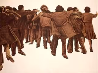 "El Abrazo", que data de 1976, está considerado uno de los símbolos pictóricos de la Transición y es la base del monumento levantado en la calle Atocha de Madrid en memoria de los abogados laboralistas asesinados en un bufete próximo en 1977.