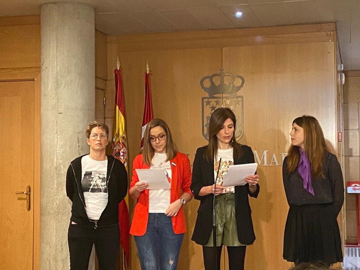 El texto del comunicado, leído por diputadas de cada uno de los grupos, reclama "la igualdad real entre mujeres y hombres" y se compromete a desde la Asamblea de Madrid, ha apoyar "firmemente estas reivindicaciones", y "defender los derechos más básicos para todas las mujeres, sin distinciones de ningún tipo".