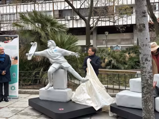El alcalde de Madrid, José Luis Martínez-Almeida, desvela la escultura en el parque Gregorio Ordoñez.