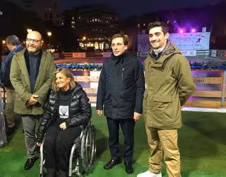 Mientras el primer grupo de patinadores formaba una fila para ser los primeros en pisar la pista, el alcalde de la capital, José Luis Martínez-Almeida, ha intervenido en el corte de la cinta inaugural y ha aseverado que el Ayuntamiento apoya esta iniciativa en la que los madrileños podrán hacer "un ejercicio de solidaridad".
