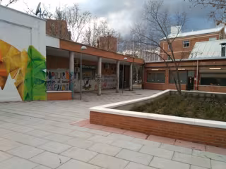 En la plaza se inauguraba en diciembre el mural 'Claros del Bosque', fruto del proyecto colaborativo Compartiendo Muros, impulsado por la Dirección General de Intervención en el Paisaje Urbano y Patrimonio Cultural.