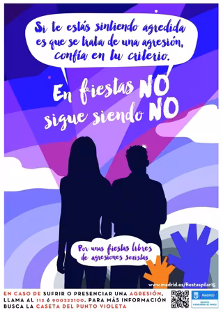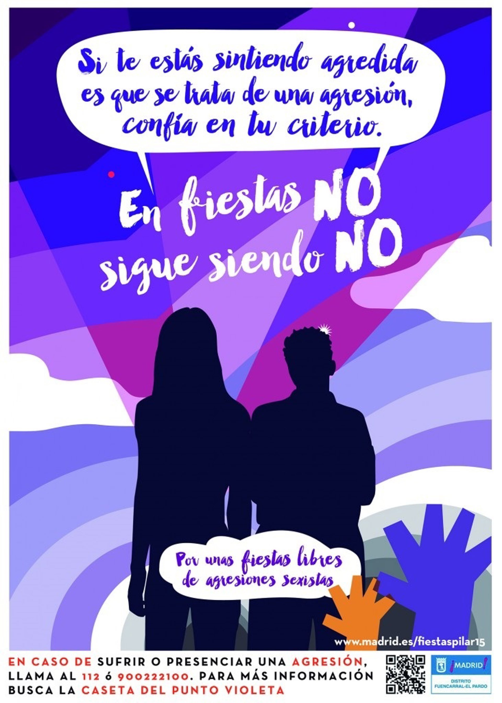 Así, como han hecho en otros municipios, desde que gobierna Manuela Carmena estas campañas de prevención se han lanzado en Arganzuela, Chamartín y, ahora, en las fiestas del Barrio del Pilar que se celebrarán este fin de semana y donde también se colocará un punto violeta donde denunciar e informarse.