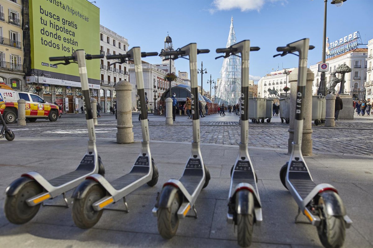 Archivo - Varios patinetes eléctricos estacionados en el centro de Madrid. - Jesús Hellín - Europa Press - Archivo