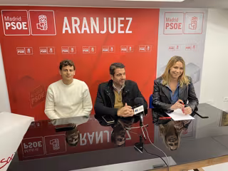 Archivo - El portavoz del PSOE en Aranjuez, Óscar Blanco, y los diputados de la Asamblea Javier Guardiola y Mar Espinar - PSOE DE ARANJUEZ - Archivo