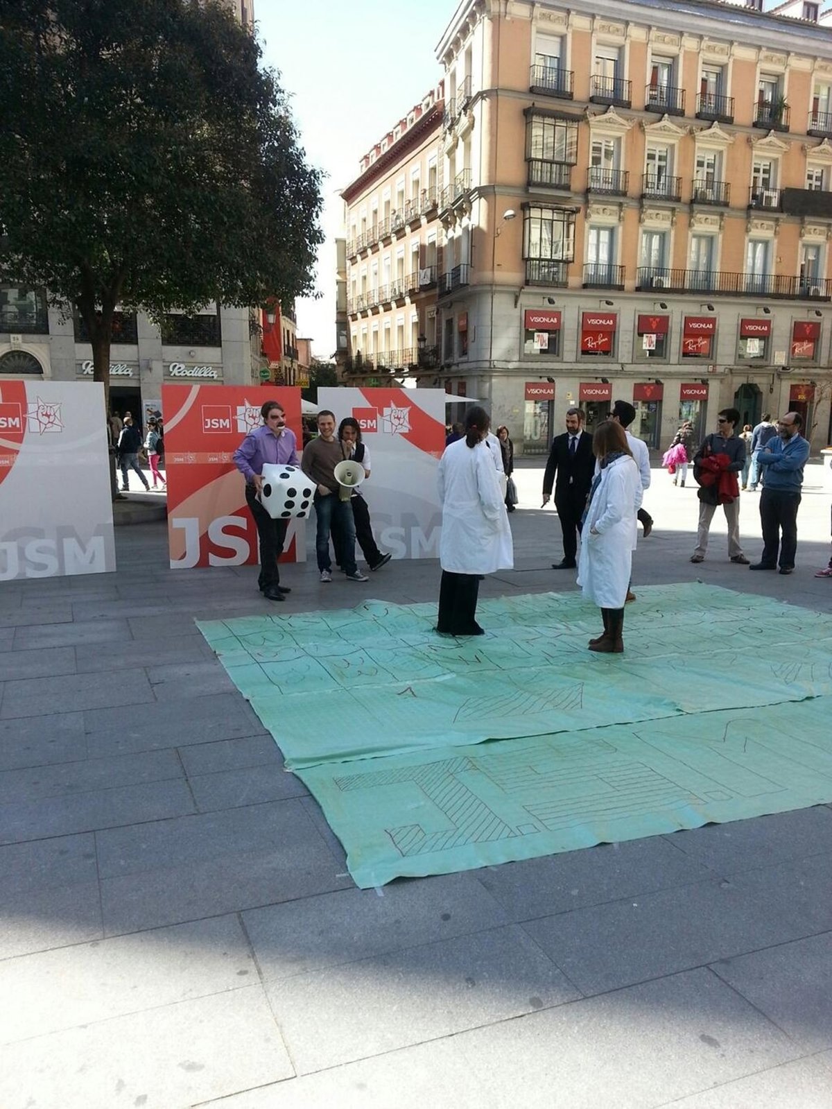 Durante el acto, se ha representado cómo el Partido Popular juega a la ruleta con científicos e investigadores madrileños al preferir los casinos a la innovación, según explica JSM en un comunicado. En ella, uno de los participantes estaba caracterizado con una careta que representaba al expresidente del Gobierno José María Aznar.