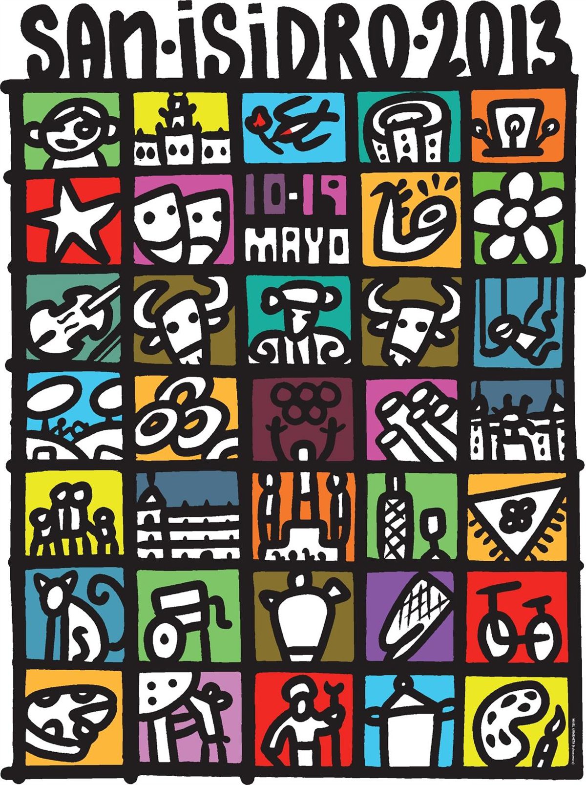 "En el cartel de las Fiestas de San Isidro 2013 aparece toda la iconografía de la ciudad y los iconos del amplio abanico cultural que ofrece Madrid, entre los que destaca una golondrina que trae buenas noticias, novedades, la primavera y el buen tiempo", ha señalado el delegado de las Artes, quien ha incidido en el "enfoque novedoso de la cartelería".