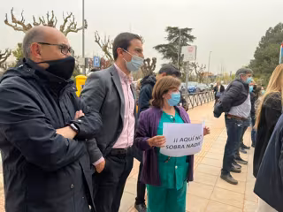 El secretario general del PSOE-M, Juan Lobato, acompaña a los trabajadores sanitarios del Hospital 12 de octubre en una reivindicación. - PSOE-M
