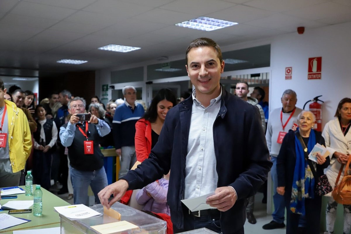 El candidato del PSOE a la Presidencia de la Comunidad de Madrid, Juan Lobato, votando en Soto del Real. - PSOE-M