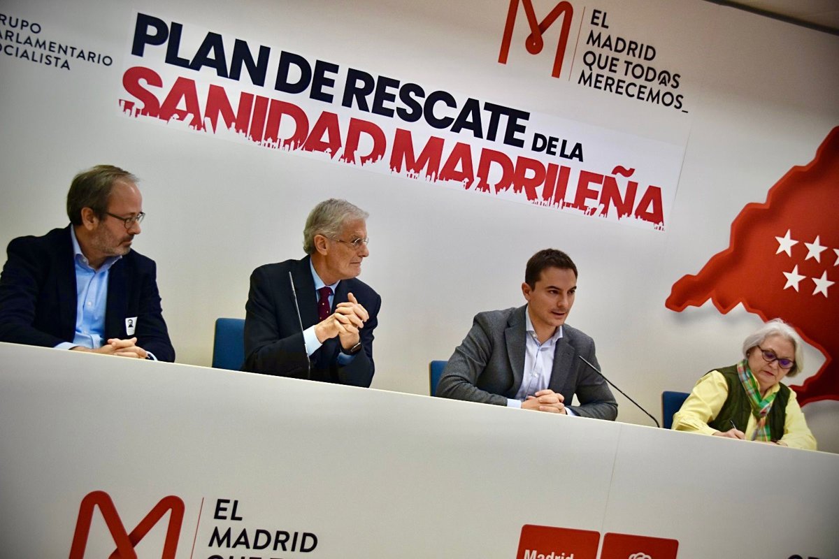 Lobato ha presentado su Plan de Rescate en la Cámara regional acompañado de los profesionales sanitarios que han puesto su experiencia en la elaboración del proyecto, junto a José Ángel Satúe, médico internista con 25 años de servicio en la Salud madrileña, José Manuel Freire, exconsejero de Sanidad en el País Vasco y portavoz de Sanidad en la Asamblea durante 12 años, Matilde Díaz, diputada, médico, especialista en Medicina del Trabajo y actual portavoz de Sanidad en la Asamblea y Carlos Moreno, cardiólogo y secretario de Sanidad de la Ejecutiva del PSOE de Madrid.