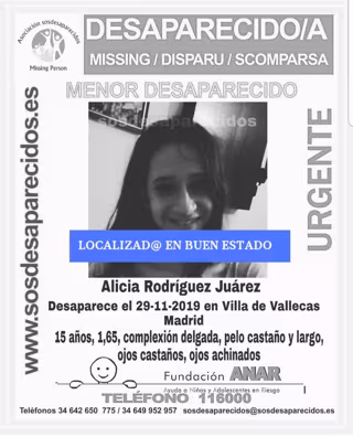 Se trata de Alicia Rodríguez Juárez, una joven de 15 años que se encuentra en paradero desconocido desde el viernes. Mide 165 centímetros, es de complexión delgada, luce el pelo largo y castaño y tiene los ojos castaños y achinados.