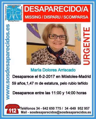 La Policía Nacional ha confirmado este lunes que ha sido hallado el cuerpo sin vida de María Dolores Arriscado, la vecina de Móstoles desaparecida el pasado día 6 de febrero.