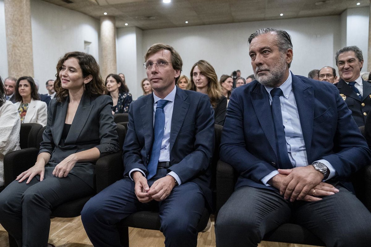 (I-D) La presidenta de la Comunidad de Madrid, Isabel Díaz Ayuso; el alcalde de Madrid, José Luis Martínez Almeida; y el consejero de Presidencia, Justicia e Interior en la Asamblea de Madrid, Enrique López, asisten al Solemne Acto de Apertura del Año J - A. Pérez Meca - Europa Press