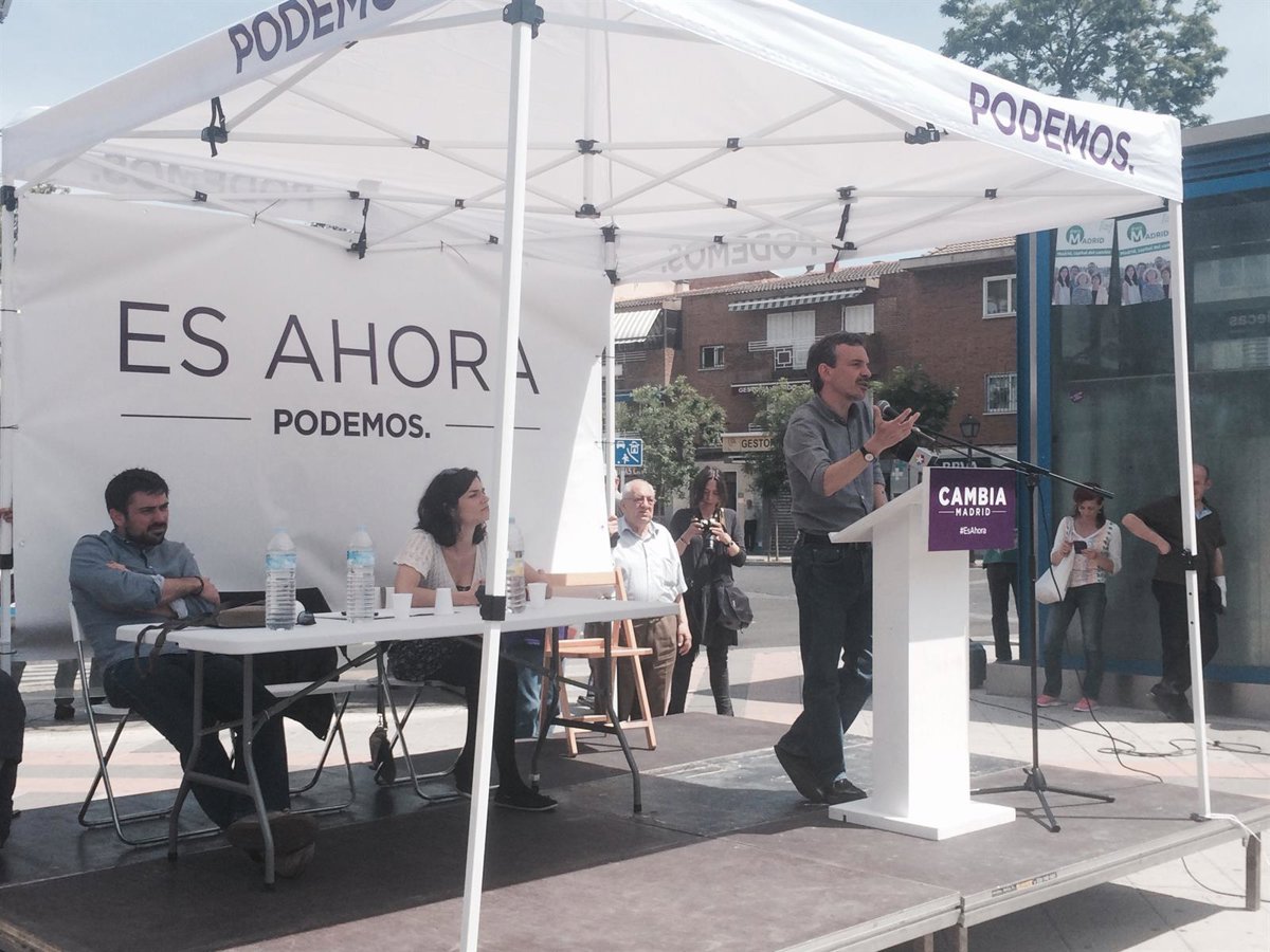 El candidato de Podemos a la Comunidad de Madrid, Juan Manuel López, ha instado este domingo a sus electores a que convenzan a cinco personas para que les voten, durante un acto celebrado en la Villa de Vallecas.