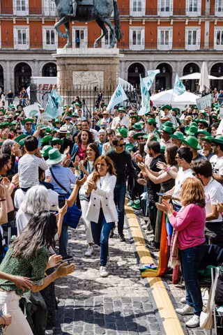 Más Madrid ha celebrado su acto central de campaña, 'De Madrid al cielo', en la Plaza Mayor, donde han habilitado 2.000 sillas, con reserva previa y todas ocupadas, más ciudadanía que ha seguido de pie el acto dentro del espacio acotado.