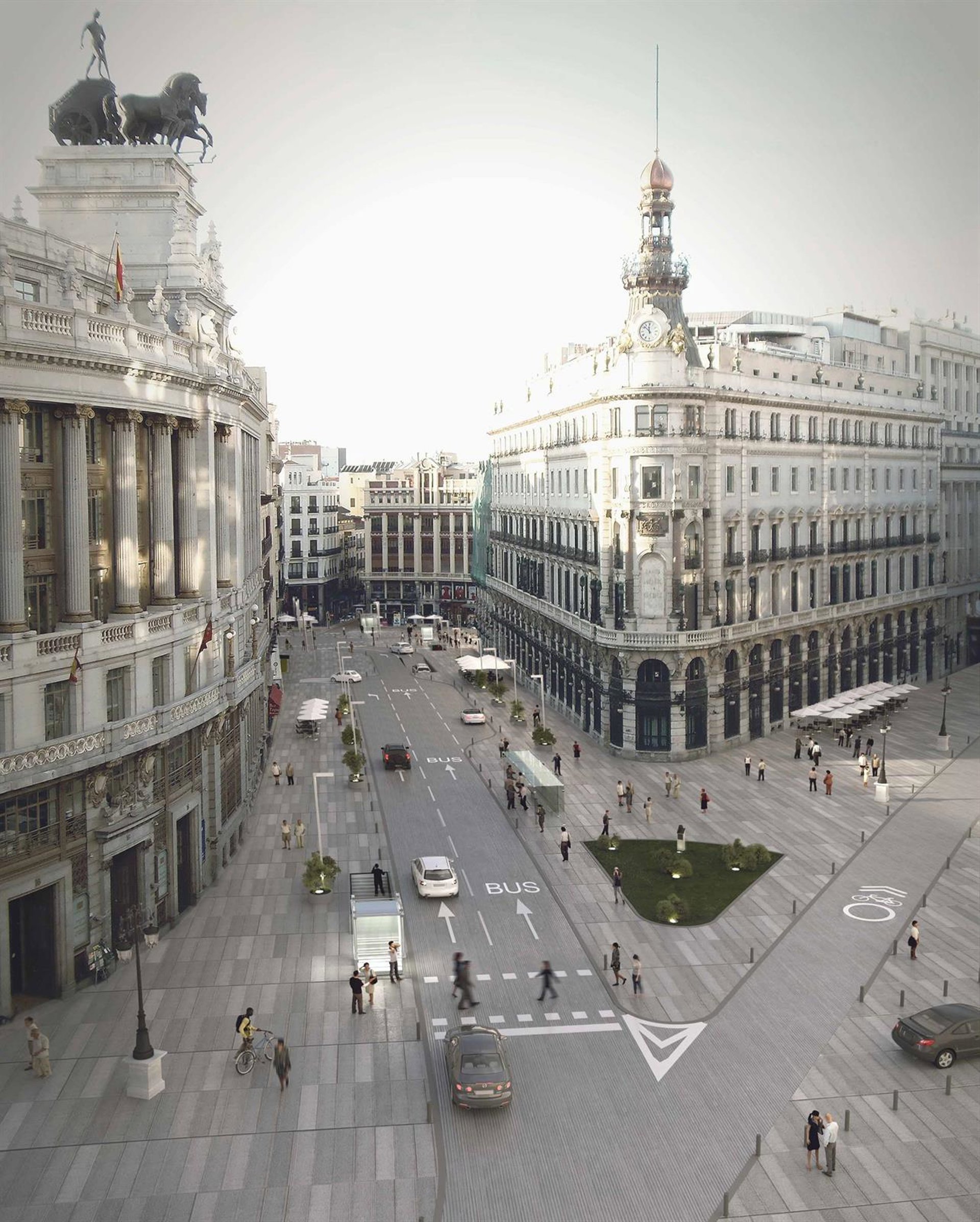 Además aumentan en 151 las plazas públicas de aparcamiento en comparación con el anterior plan mientras que la rampa de acceso para los autobuses prevista, que atravesaba la calle Alcalá y la partía en dos, se transforma en cuatro rampas de un tamaño más reducido y con menor impacto en el espacio público. Esta solución ha sido avalada por la Comisión Local de Patrimonio de la Comunidad.