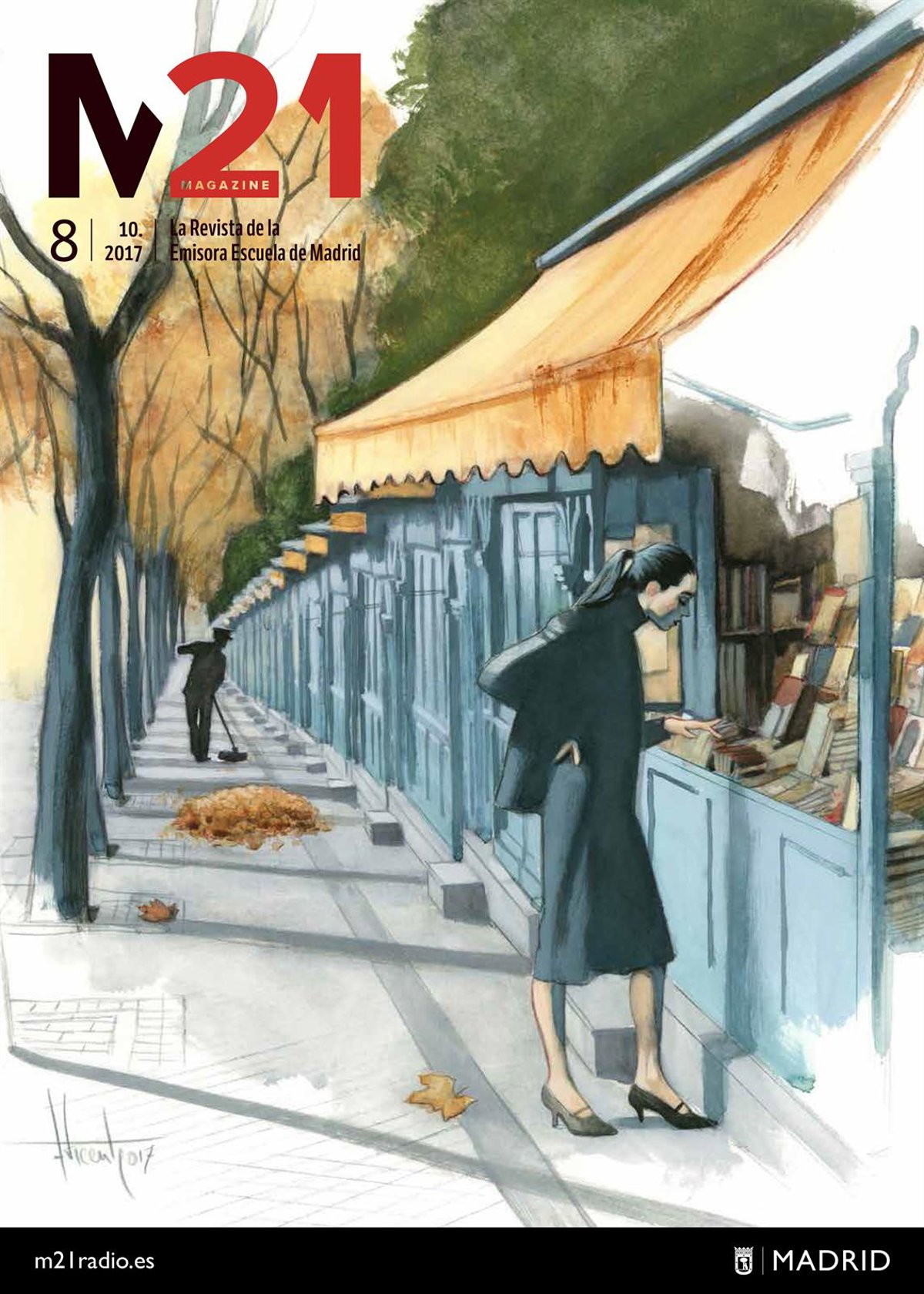 La revista madrileña mensual 'M21Magazine' ha dedicado el número de mayo a la Feria del Libro de Madrid, que este año se celebra entre el 31 de mayo y el 16 de junio, y ha dedicado varios artículos al evento cultural así como su portada, realizada por el ilustrador Javier Zabala.