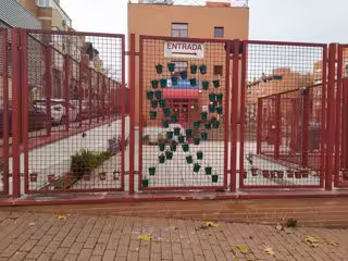 Las macetas moradas en forma de lazo del centro de igualdad de Carabanchel María de Maeztu siguen vandalizadas casi un mes después de amanecer pintadas de verde. Tampoco hay rastro de la pancarta con el lema 'Ni una menos'.