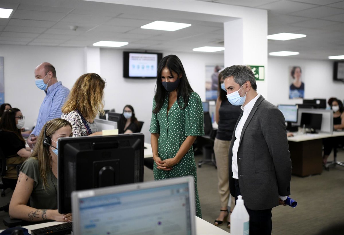 La vicealcaldesa de Madrid, Begoña Villacís, y el delegado del Área de Familias, Igualdad y Bienestar Social, Pepe Aniorte, visitan un centro de atención telefónica del Servicio de Teleasistencia Domiciliaria Atenzia. - Óscar Cañas - Europa Press