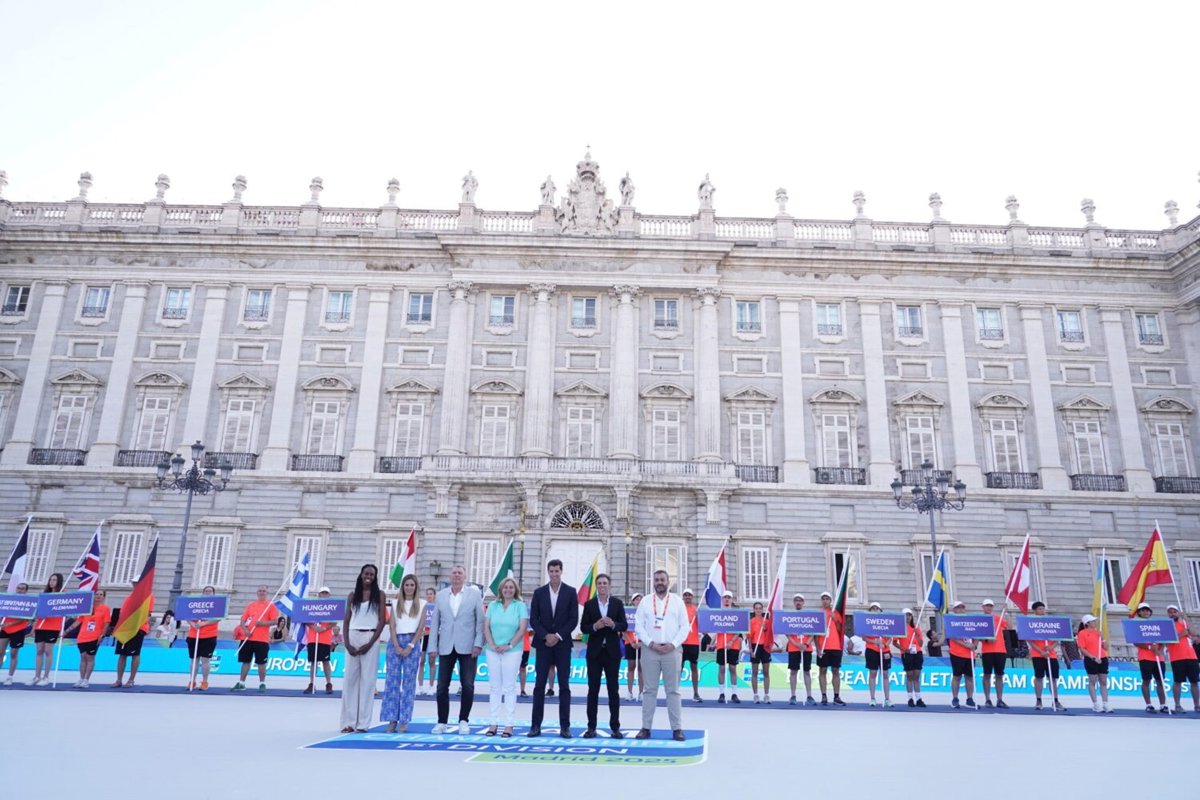 La vicealcaldesa de Madrid, Inma Sanz, junto a la concejala delegada de Deporte, Sonia Cea, y el concejal de Centro, Carlos Segura, han participado esta tarde en la ceremonia inaugural que ha tenido lugar en la plaza de Oriente, un escenario junto al Palacio Real que, según ha trasladado este jueves el Ayuntamiento de Madrid en un comunicado, "no solo ha acercado el atletismo de primer nivel a los aficionados", sino que, además, "ha difundido imágenes del patrimonio histórico de la ciudad por toda Europa".