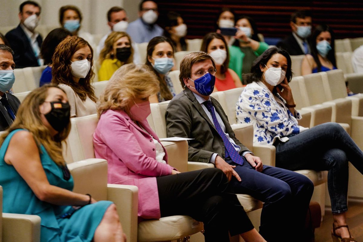 La delegada de Hacienda y Personal, Engracia Hidalgo el alcalde de Madrid, José Luis Martínez-Almeida, durante la entrega de los títulos a los nuevos funcionarios de carrera A1. - A. Pérez Meca - Europa Press