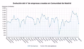 Por contra, las empresas disueltas en la región madrileña fueron 398 en agosto, lo que supone un 5,3% más que hace un año. Atendiendo a las empresas disueltas, la Comunidad de Madrid fue la que presenta mayor número seguida de Andalucía (210) y Cataluña (115).
