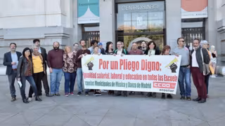 Madrid en Pie de Municipalista ha mostrado este martes su respaldo a las reivindicaciones de trabajadores de las escuelas municipales de música y danza que se ha manifestado esta mañana a las puertas del Ayuntamiento para reclamar igualdad salarial, educativa y laboral en todos los centros de la red.